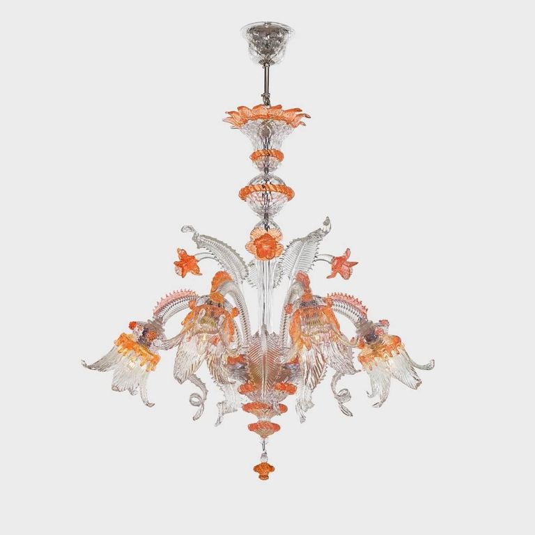 • Work of art embellished with leaves and flowers made by Venetian master glassmakers.